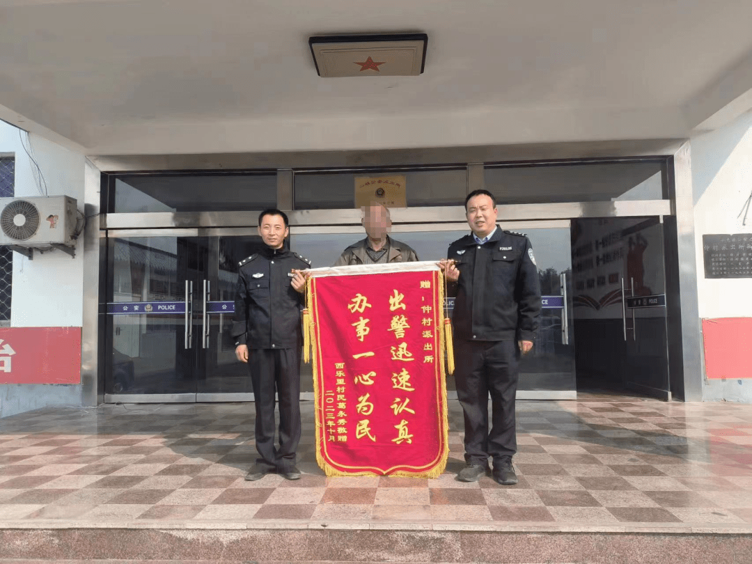 后报警人向民警送上致谢锦旗,对仲村派出所工作人员表示感谢。
