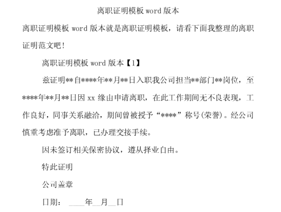 离职证明模板常见的还是比较多的,一般只要包含基本必须的信息就可以使用,如离职人姓名、身份证号码、入职/离职日期、在职岗位等,然后再加盖相应的章就可以了。
