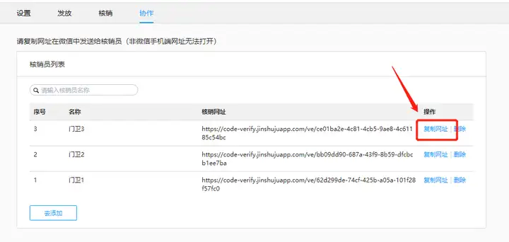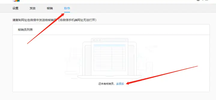 3. 添加核销码协作成员;