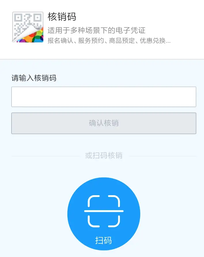 温馨提示:核销码500 次/小时,建议不要点击确认核销