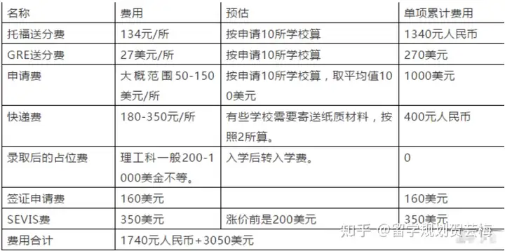 还有一项就是WES和ECE的成绩单认证费用,每所大致230美元。有的学校需要,有的学校不需要,因此此部分不计入。
