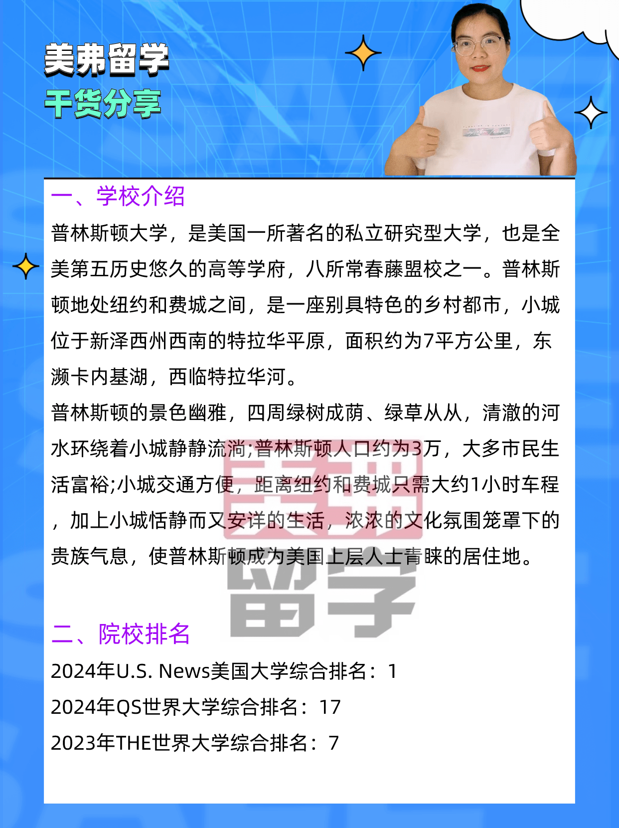 各位想要申请美国研究生留学的同学,今天北京美弗美弗洛老师为大家介绍一下普林斯顿大学的相关信息,后续还会陆续介绍其他美国TOP50院校,有需要的同学一定要收藏哦!