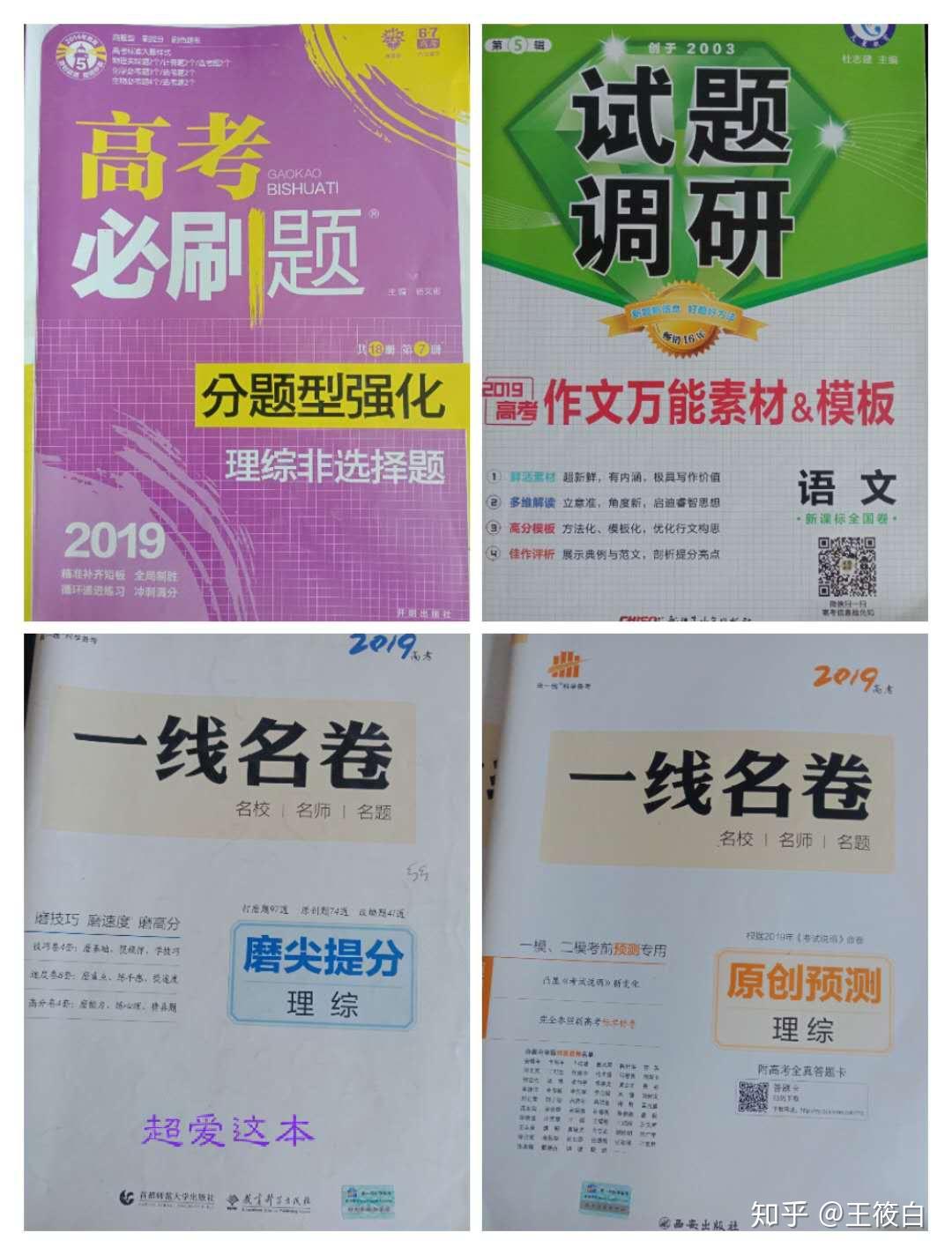 高考真题多做几遍,最好做个十几二十遍。真题才能让我们更近距离感受高考出题的套路。做法和之前一样,换汤不换药。第一遍,只刷一门的选择,查缺补漏,翻看错题,找题检测,总结套路。第二遍,只刷一科的非选择题,然后重复上面的步骤。 然后觉得自己掌握的差不多就可以进行模拟了。模拟真实的高考环境,计时,可以在某宝上买点答题卡练手,练得多了,自然不会怯场。