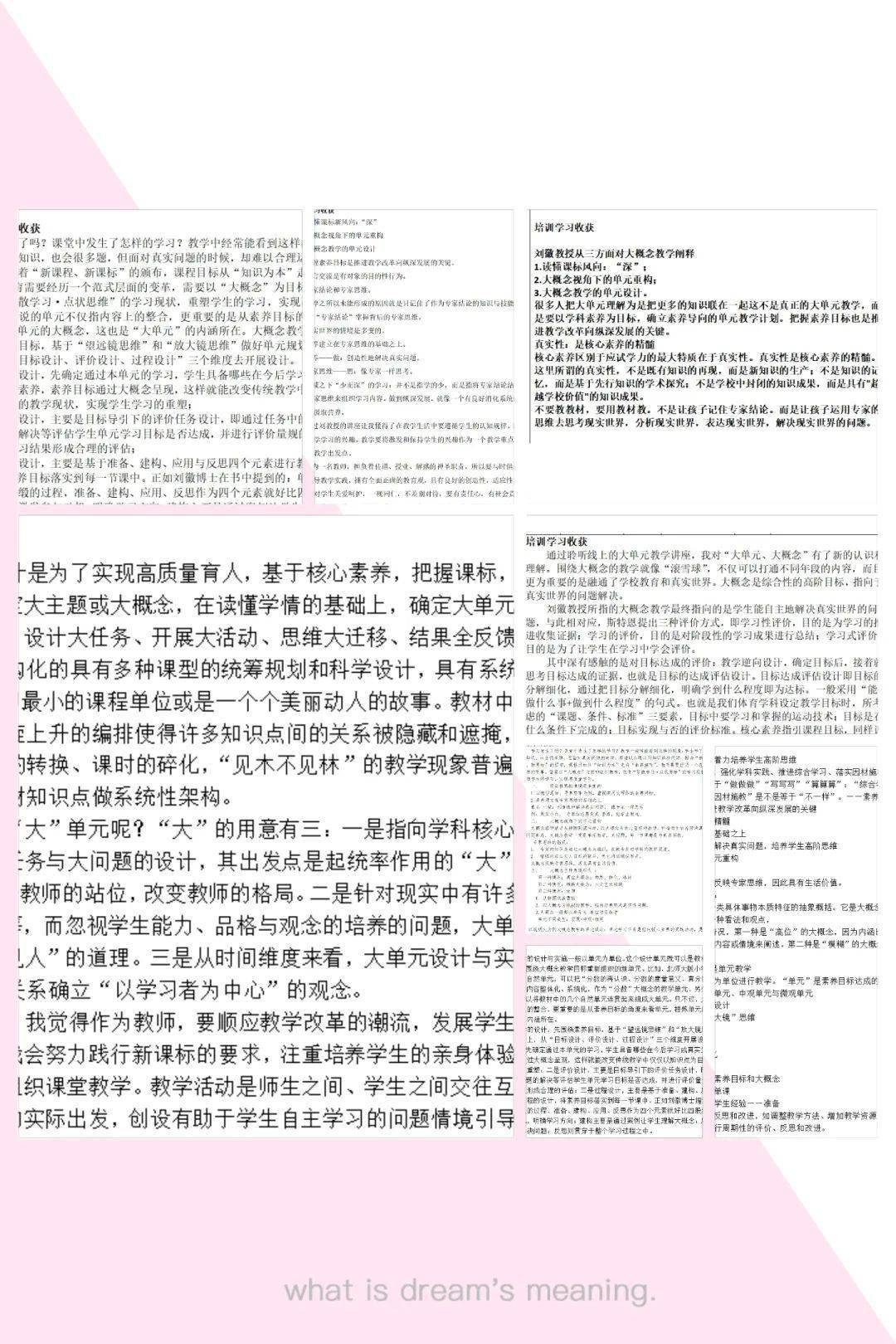 自2022年版义务教育新课标颁布以来,大概念、大观念、核心素养、单元整体教学、教学评一致性等新的教学理念接踵而至。通过认真聆听本次深入浅出,高屋建瓴的报告,老师们对什么是大概念、大单元、跨学科、项目式教学有了更深刻的理解,对素养导向的单元整体设计有了新的认识,并认真撰写了培训记录。