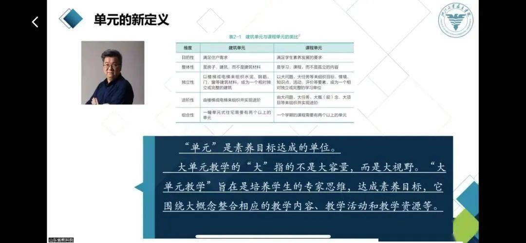 为落实教育部2023年全国基础教育教研工作会议精神,创新教研方式方法,进一步发挥教研的引领支撑和基础保证作用,山东省教育科学研究院决定于2023年10月15日通过线上和线下相结合的方式组织开展2023年度第三期教研大讲堂活动。山东省青岛第七中学作为全省大单元教学实验学校之一,组织教师积极参加了此次大单元教学线上培训。