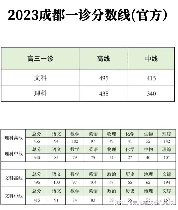 据成都市教科所划线数据来看,成都一诊划线分文理科、高中低线。其中,高线为一本线,中线为本科线,低线为专科线。