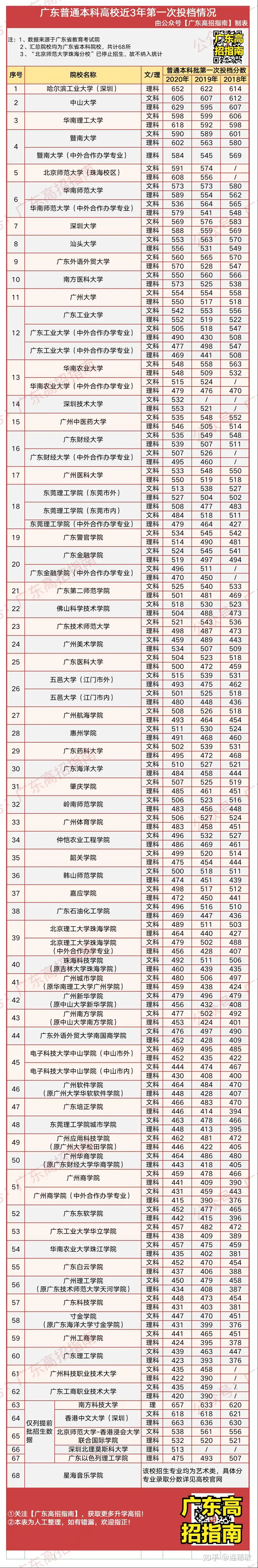 莫慌!我们呕心沥血、废寝忘食,为大家整理了广东省68所本科高校近3年(2018-2020)普通本科第一次投档分数线!