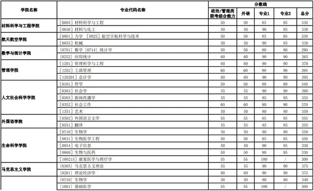 一、专业复试分数线