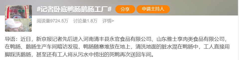 因口感脆、味道鲜,鸭肠和鹅肠常常占据着火锅店“热销榜”的前几名。这体现了食客对鸭肠、鹅肠的喜爱,但并不代表放心。6月17日,#记者卧底鸭肠鹅肠工厂#等多个话题引爆热搜。