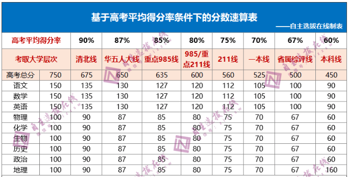 自主选拔在线团队根据历年高校录取情况,汇总整理了不同层次的大学,各科需要考取最低分数,先来看看吧~