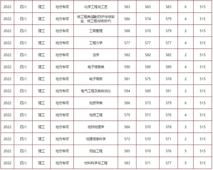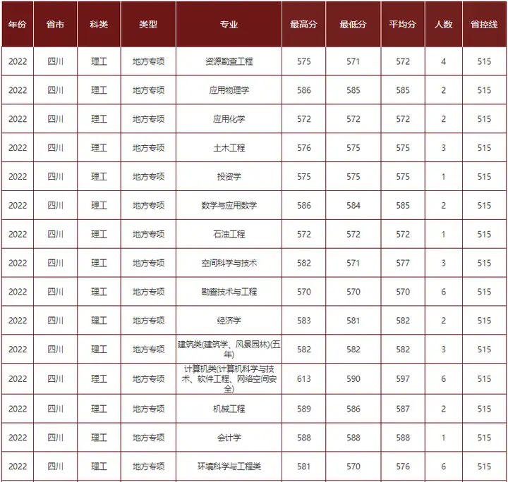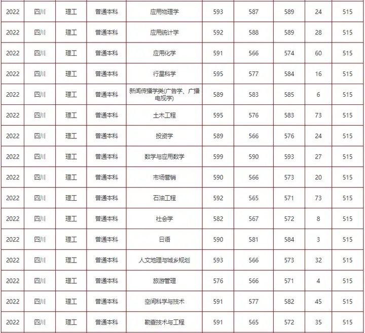 今天为大家介绍成都理工大学2022年在四川的专业录取情况,一起来看!