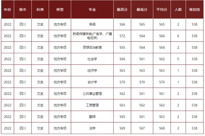 2022年成都理工大学在川地方专项专业分数线