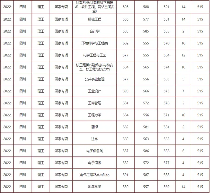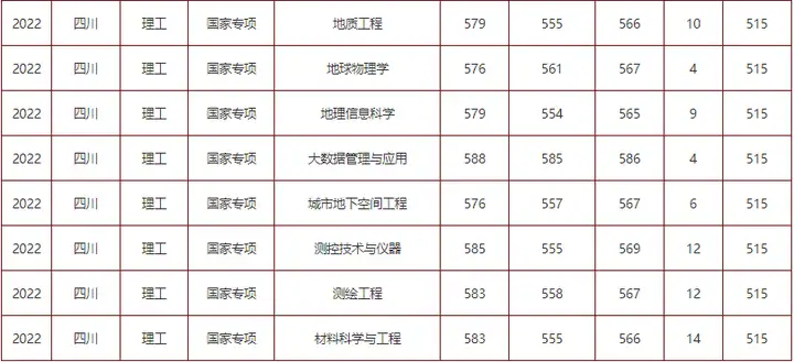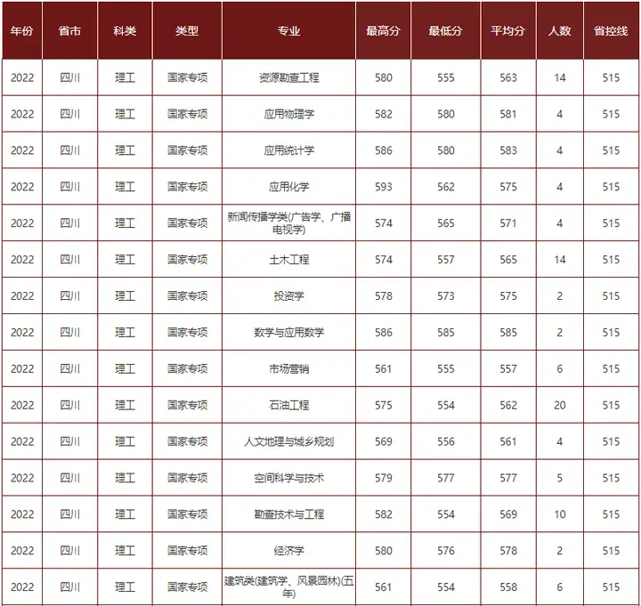 2022年成都理工大学在川国家专项专业分数线