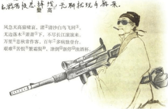 而要说谁是学生们最喜欢“魔改”的人物,唐代的著名诗人杜甫,一定是当仁不让的,在学生们的画笔下,杜甫化身“冷血杀手”。