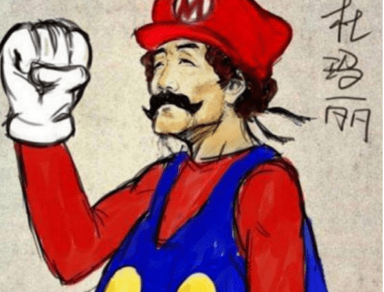 还有下面这个,“超级玛丽”版杜甫,头戴小红帽,身穿蓝色背带裤,嘴上还留着一撮八字胡,光是看这个图片,脑海里就不自觉的开始响起“超级玛丽”里的背景音乐了。