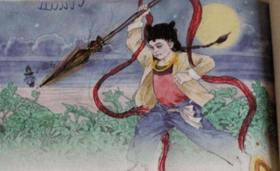 于是有同学在他身上加了几笔,闰土手里的钢叉被画成了火尖枪,身上缠着混天绫,脖子上套着乾坤圈,脚下还踩着风火轮。