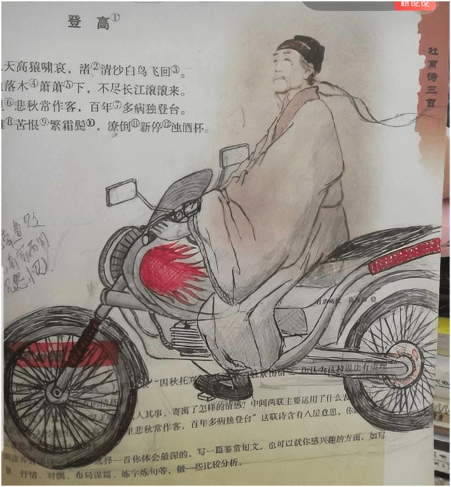 原标题:“杜甫玩上cosplay”,学生课本硬核涂鸦走红,杜甫:你礼貌吗