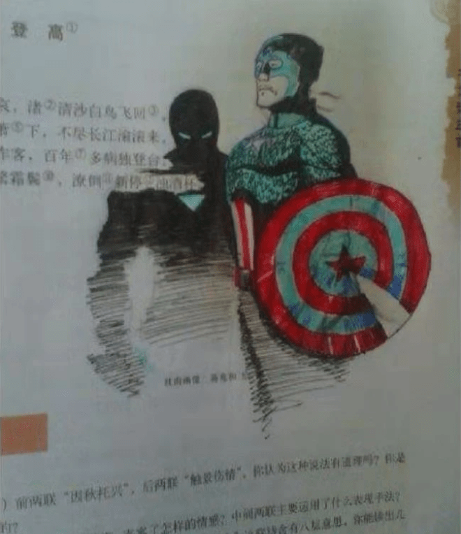“杜甫玩上cosplay”,学生课本“硬核”涂鸦走红,杜甫:你礼貌吗