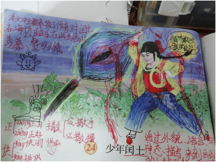 只要是有人物的插图,就一定逃不掉学生的“毒手”,学生们会在这些人物身上,尽情的发挥自己的想象力,为他们画上一些场景和服装,看起来还真像那么回事。