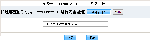 考生输入需绑定的手机号码,点击“发送验证码”按钮,系统向输入的手机号发送一条短信验证码,考生输入收到的短信验证码,点击“确认”按钮。