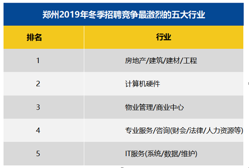 1月7日,智联招聘发布《发布2019年冬季郑州雇主需求与白领人才供给报告》,报告对郑州地区2019年冬季雇主需求与白领人才供给方面的数据进行分析,统计出郑州地区竞争最激烈的五大行业、竞争最激烈的五大职业及十大高薪行业。