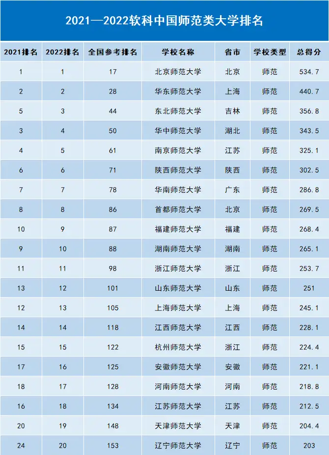 2022软科中国师范类大学排名的上榜高校有100+所,其中有2所北京高校上榜,分别是蝉联榜首的北京师范大学和位于第八名的首都师范大学。