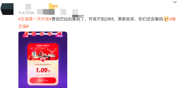 “费劲巴拉的集到了,开奖不到2块5,果断放弃。”