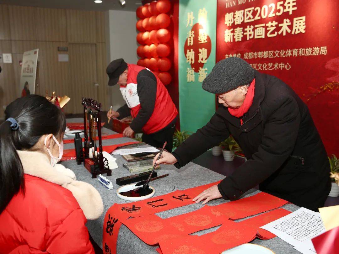 活动现场,郫都区书法协会的老师们以笔墨传情,墨香致远,展现了中国传统文化的独特魅力,他们的笔下,一幅幅春联和福字跃然纸上,这些春联和福字不仅寓意吉祥,更承载着深厚的文化底蕴,寄托着对未来的美好憧憬,大家纷纷挑选着心仪的春联,脸上洋溢着幸福的笑容。