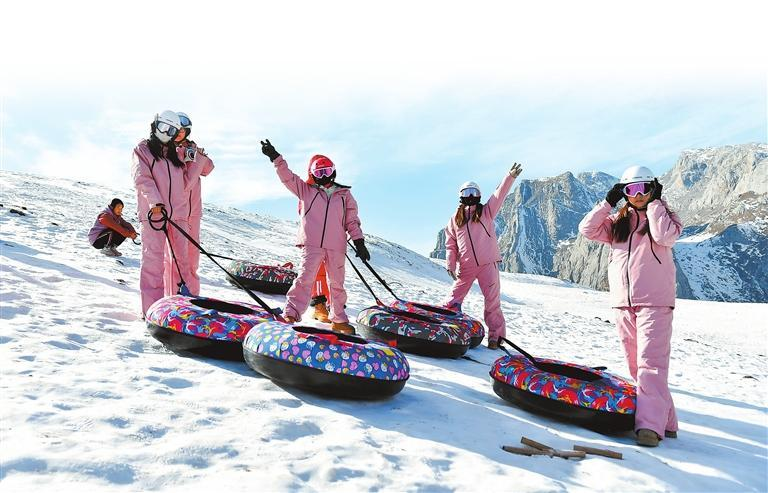游客在迭部县那黑卡冰川滑雪场体验特色冰雪项目 马伊星