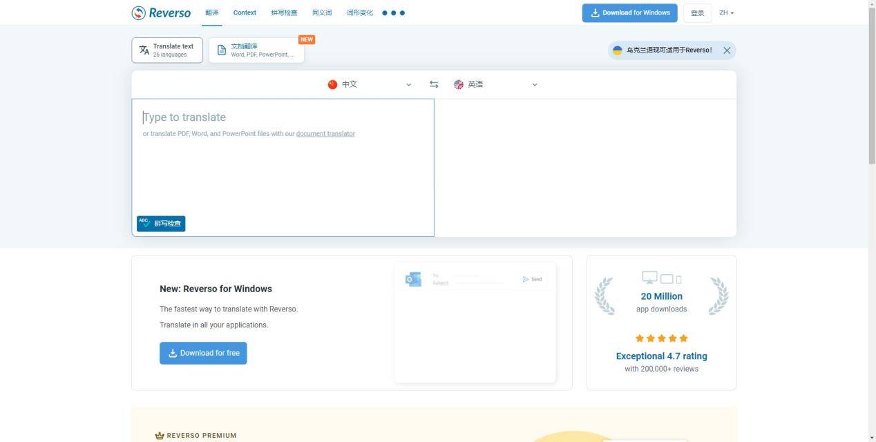 Reverso:一款在线翻译和语法工具,支持多种语言。提供了各种翻译选项,包括单词翻译、句子翻译和文本翻译。