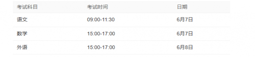 6月7日:9:00-11:30语文,15:00-17:00数学