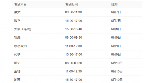 全国统考和普通高中学业水平选择性考试于6月7日至9日举行,具体科目考试时间安排为: