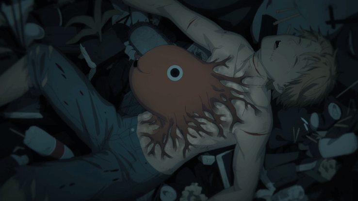 在本作中,男主角电次因为走投无路与恶魔定下契约,最后在他快死掉的时候,电锯恶魔波奇塔拯救了他并且融进了他的身体,之后的他就可以变身成为一个无情的杀戮机器