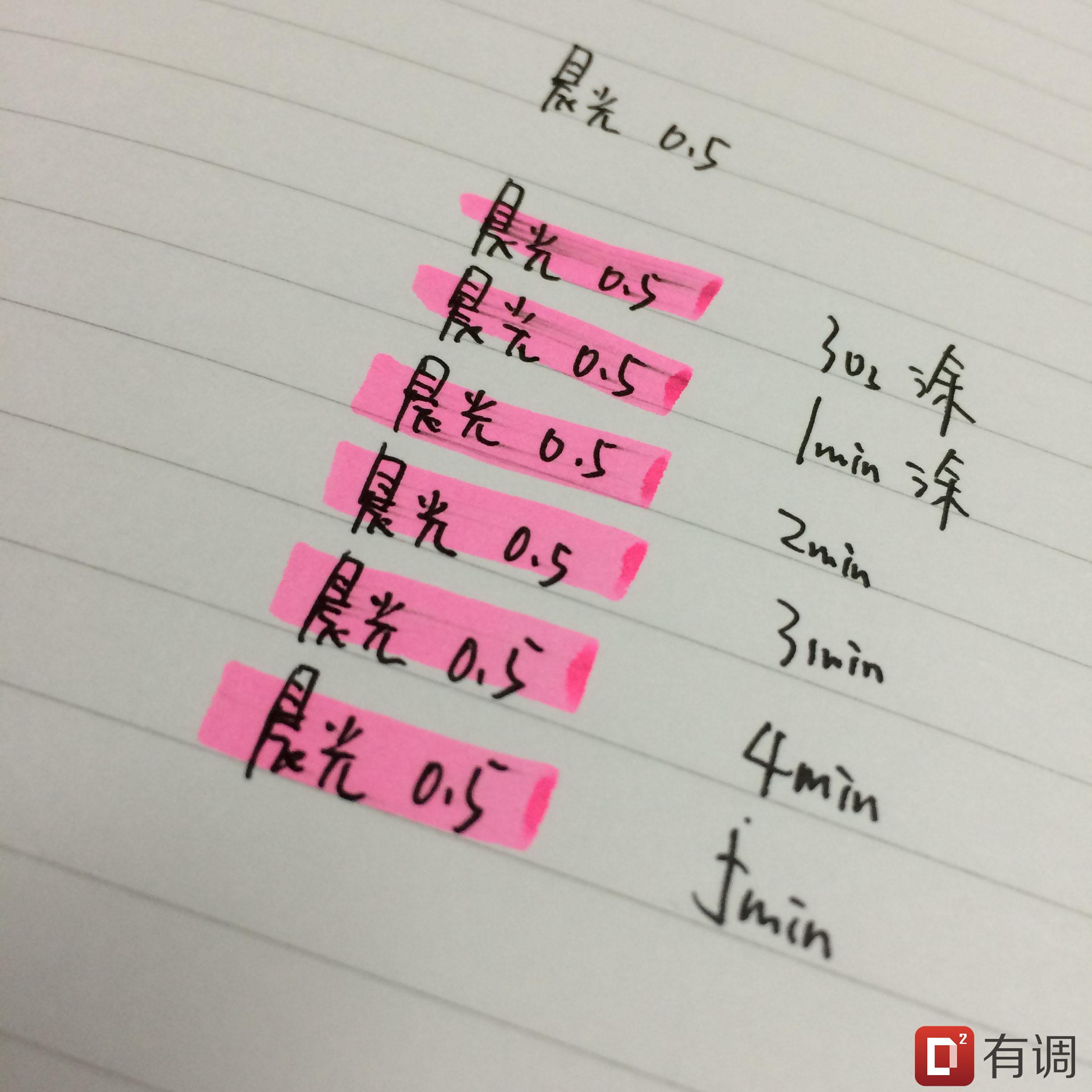 这款MUJI除了书写手感有欠缺外,在其他维度的表现均高于平均水平,而它本身也有着¥5.00的低价,作为日常记录使用会是个不错的选择。