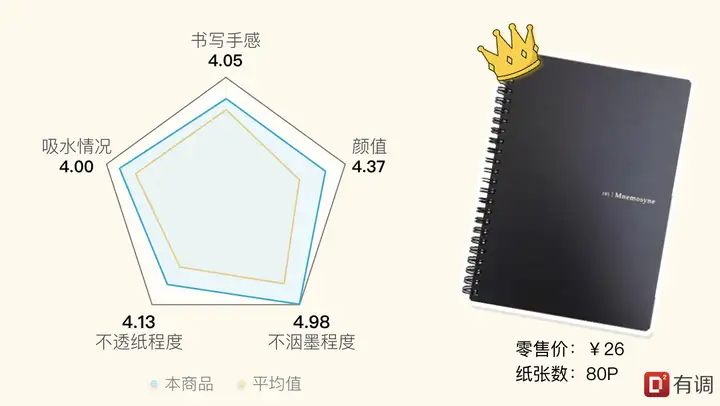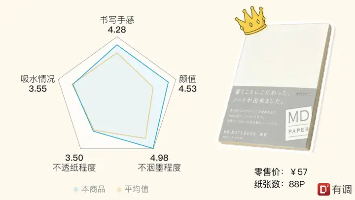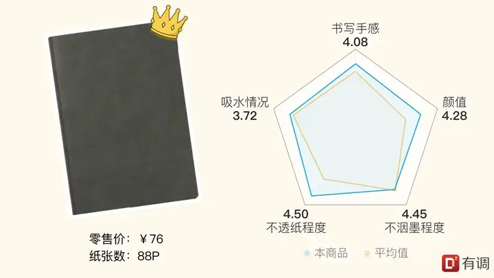 优点:不洇墨程度、不透纸程度、吸水情况几个维度表现均不错;缺点:书写手感一般、荧光剂含量较多。情怀之选