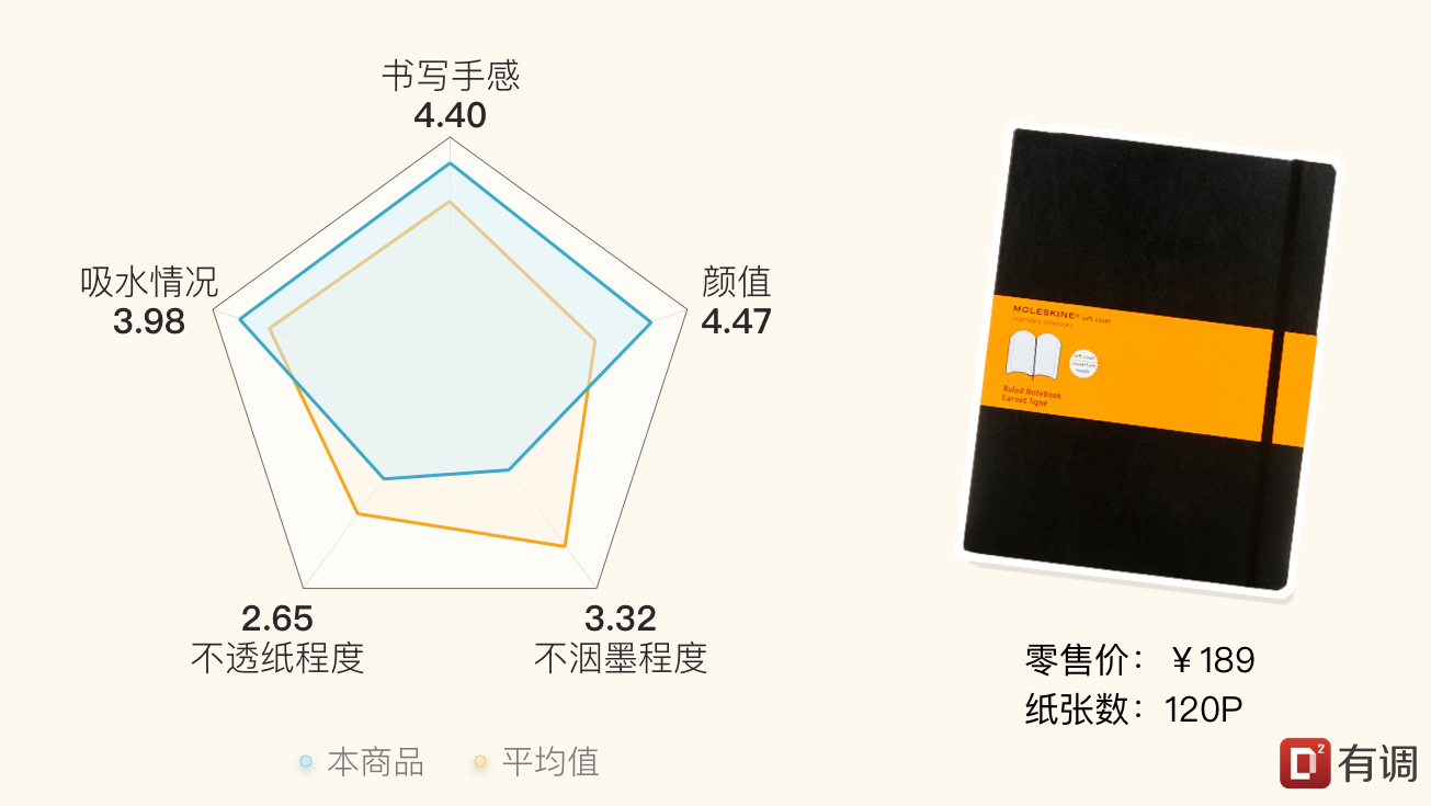 优点:在书写手感、不洇墨程度和颜值上表现良好;缺点:吸水情况和不透纸程度有不足。Q:为什么说这款本子也是moleskine?
