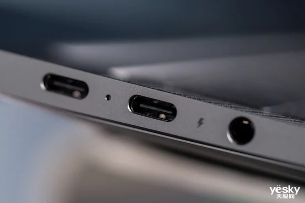 侧面接口方面,荣耀提供丰富的选项。机身左侧配有一个USB-C接口、一个雷电4接口,轻松满足画面输出、数据传输等使用要求;3.5mm耳机孔同样设计在机身左侧边框上。