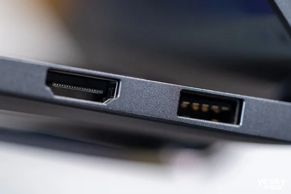 机身右侧提供一个USB-A 3.2 Gen 1和一个HDMI接口,满足日常USB-A数据传输和视频输出。