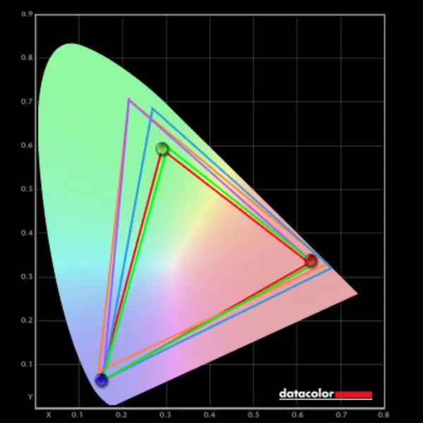 面对这块出色的屏幕,笔者选择红蜘蛛Sypder 5 Elite对屏幕的色域、亮度和色彩精确度进行测试。