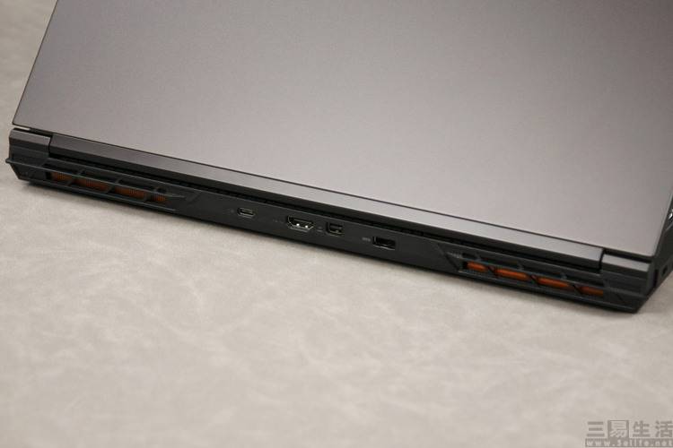 而在机身后端,战神TX8R7的接口配置是一个加强供电的USB Type-C、一个HDMI、一个miniDP,以及一个看起来很像USB、但其实是电源DC的专用接口。