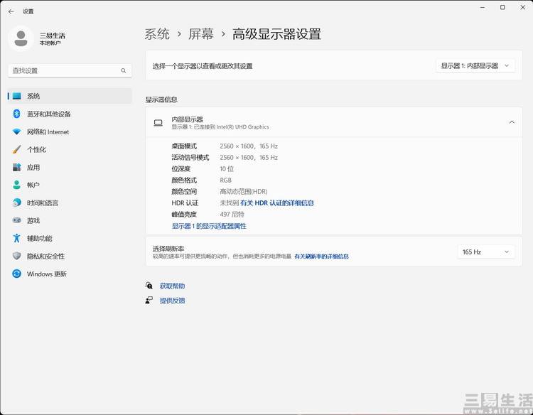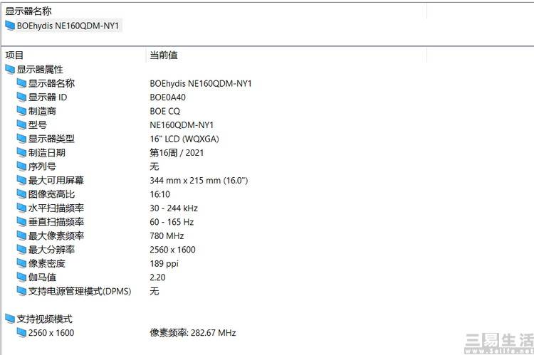 可以看到,这是一块来自京东方的15.6英寸雾面屏,它具备2560*1600分辨率、165Hz的最高刷新率,甚至还够支持10bit显色和全局HDR模式(而非只对应流式HDR视频)。