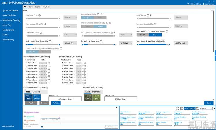 更进一步来说,通过Intel XTU可以看到,神舟此次还为战神TX8R7提供了相当、相当充裕的CPU供电配置。它的CPU默认睿频最大功耗高达162W,甚至还支持进一步手动解锁。