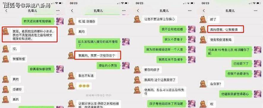 从奶绮与孔雪儿的众多聊天内容来看,孔雪儿的态度是:没有和黄嘉新交往,也不知道黄有女友。