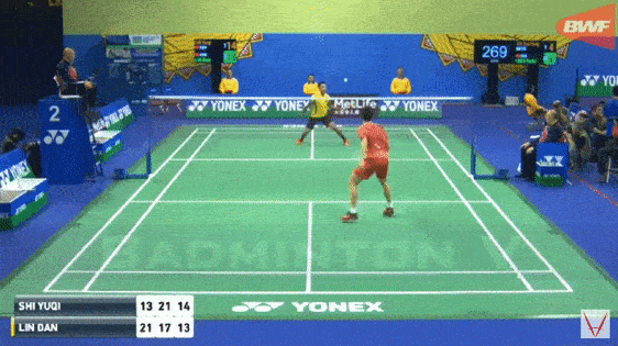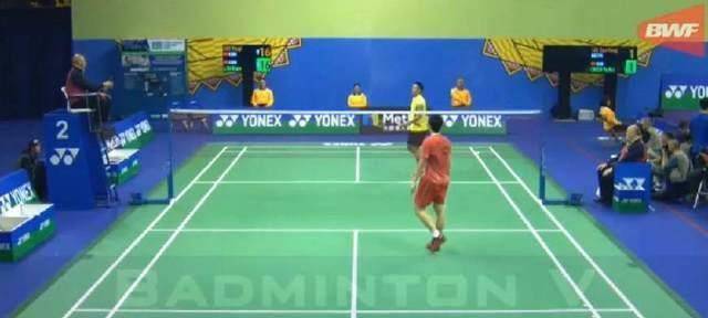 然而,司线员示意球是界内。林丹16-17。