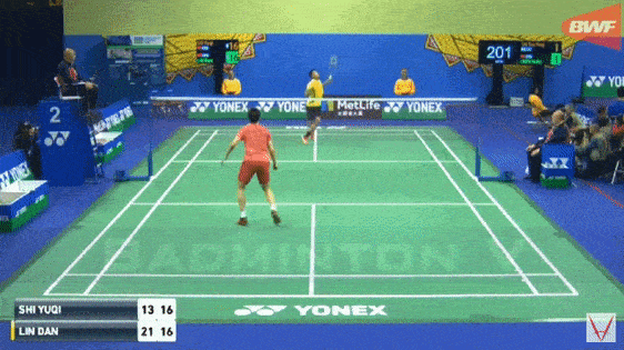 第二节比赛,一上来林丹一度落后,在将比分追到16-16平之后,场上出现了争议的一幕,石宇奇杀球,林丹以为球出界了。