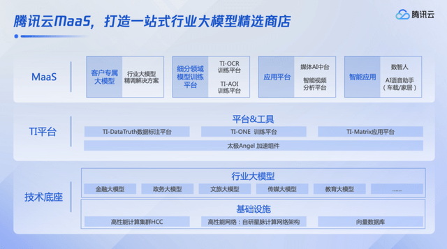 6月19日,腾讯云放大招,其依托腾讯云TI平台打造的行业大模型精选商店,面向B端,以MaaS(Model-as-a-Service)一站式服务为卖点,帮助需方“私人订制”大模型及智能应用。