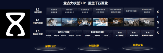 而在算力项和算法项,华为云的盘古大模型在最底层构建了以鲲鹏和昇腾为础石的AI算力云平台,以及异构计算架构CANN、全场景AI框架昇思MindSpore,AI开发生产线ModelArts等,为开发和运行提供分布式并行加速,算子和编译优化、集群级通信优化等关键能力,并最终呈现出L0-L1-L2三层架构,相当于河道-干流-支流的“开箱即用”型模态。