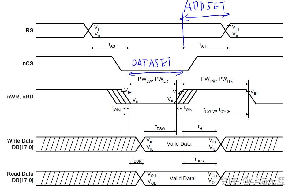 82、FSMC中的DATASET和ADDSET的设置需要参看外部存储器的时序图来确定。一般而言,DATASET指的是数据建立时间,也就是读/写信号开始到读/写信号停止(上升沿存储数据)的持续时间。(一般来说写比读快!)。而ADDSET指的是地址建立时间,指的是片选之后到读/写操作之前的时间,这是针对SRAM来说的,如果操纵的是TFT,不存在地址线,所以此时的ADDSET就是读/写信号结束到RS电平的转换时间。