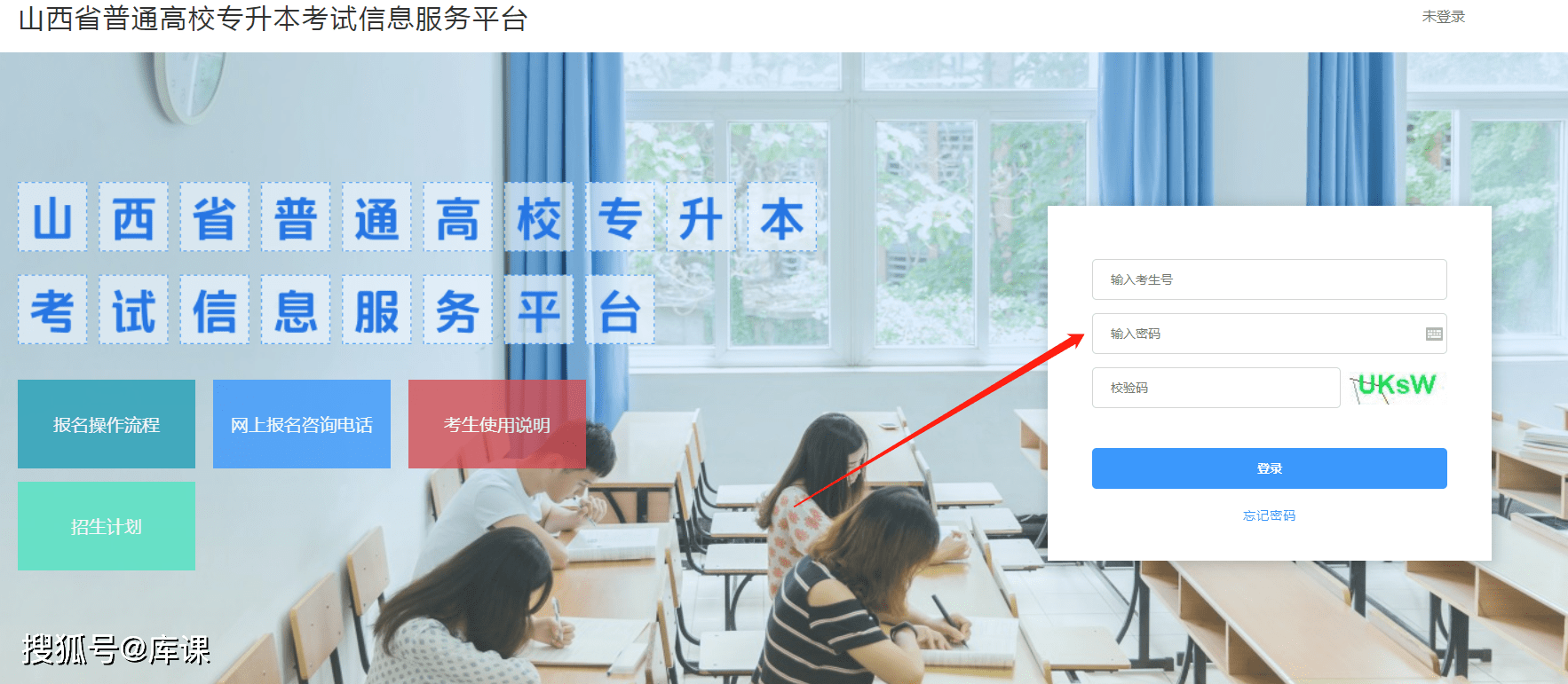 1.考生登录“山西招生考试网”(http://www.sxkszx.cn),选择首页右上方的“考生登录”;(如图)