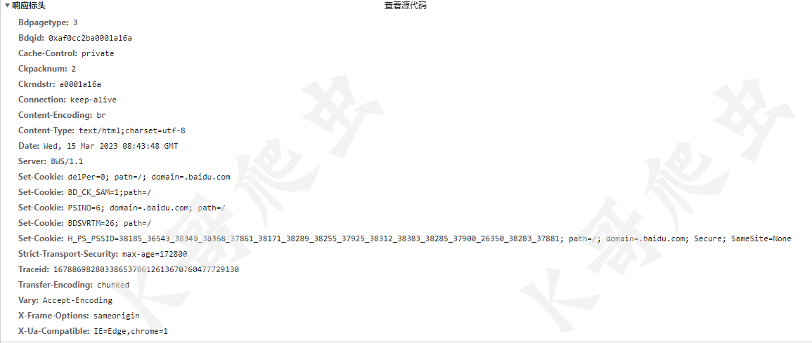 2. 响应头信息: 响应头信息中记录了服务端响应的头信息。